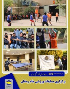 مسابقات ورزشی جام رمضان ویژه پرسنل شرکت صنایع فولاد مشیز بردسیر توسط واحد خدمات رفاهی با همکاری واحد روابط عمومی این مجموعه از روز یک شنبه مورخ 1401/01/28 لغایت روز