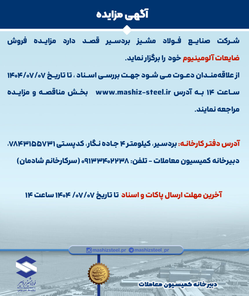 اعتبار این آگهی تا تاريخ 1404/07/15 ساعت 16 تمدید گردید .